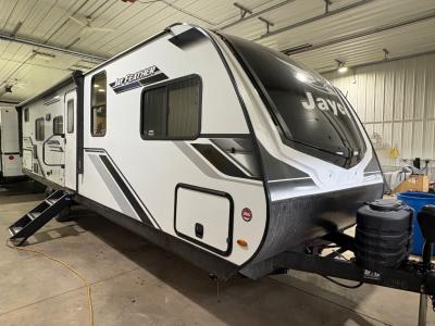 Jayco Jay Feather RVs are lightweight travel trailers that range between 28’7” and 36’11” in length and 5,280 lbs. to 7,295 lbs. in weight. Equipment offered in many Jay Feather travel trailer floorplans include a 6 cu. ft. gas/electric refrigerator, an outside camp kitchen, a residential oven with a 3-burner cooktop, a power tongue jack, rear camera backup prep and more. Check out our Jayco Jay Feather inventory at your local Jayco RV dealer, Willies RV in Bloomer, WI. Please contact us if you need assistance or have questions.