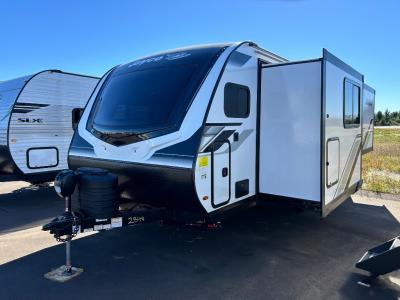 Sleeps 2 Slides 2 Length 26 ft 6 in Ext Width 8 ft Ext Height 10 ft 8 in Int Height 6 ft 6 in Interior Color Dune Gray Hitch Weight 785 lbs GVWR 7500 lbs Dry Weight 5855 lbs Cargo Capacity 1645 lbs Fresh Water Capacity 55 gals Grey Water Capacity 76 gals Black Water Capacity 38 gals Tire Size ST205/75R14D Available Beds Queen Refrigerator Type 12V Refrigerator Size 11 cu ft Cooktop Burners 3 Number of Awnings 1 LP Tank Capacity 20 lbs. Water Heater Type On Demand AC BTU 13500 btu TV Info LED Smart TV Awning Info 16' Max-Length Power w/LED Light Axle Count 2 Number of LP Tanks 2 Shower Type Radius Electrical Service 30 amp Solar Wattage 200 watts Similar Travel Trailer Floorplans