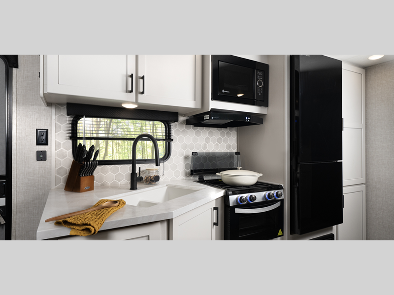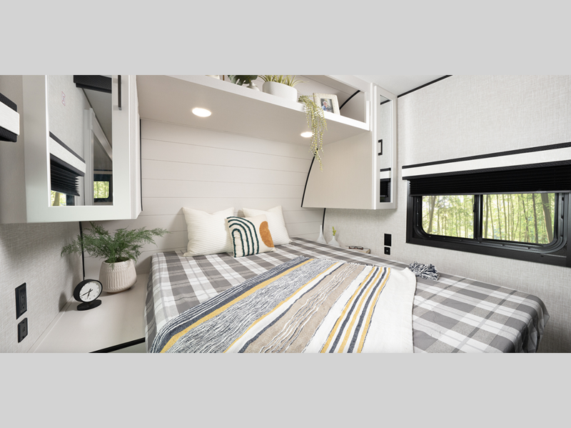 Sleeps 5 Slides 2 Int Height 6 ft 9 in Interior Color Classic Farmhouse Tire Size ST225/75R15E Available Beds Queen Refrigerator Type 12V Refrigerator Size 11 cu ft Cooktop Burners 3 Number of Awnings 1 LP Tank Capacity 20 lbs Water Heater Type On Demand Tankless AC BTU 13500 btu Awning Info 18' Power with LED Lights Axle Count 2 Washer/Dryer Available Yes Number of LP Tanks 2 Shower Type Radius Similar Floorplans