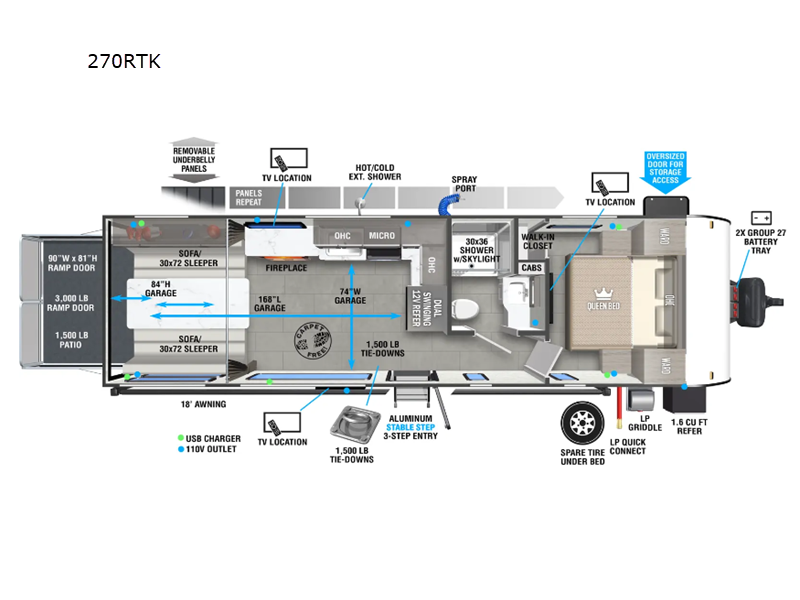 Forest River Salem FSX MAX Series toy hauler 270RTK highlights:
